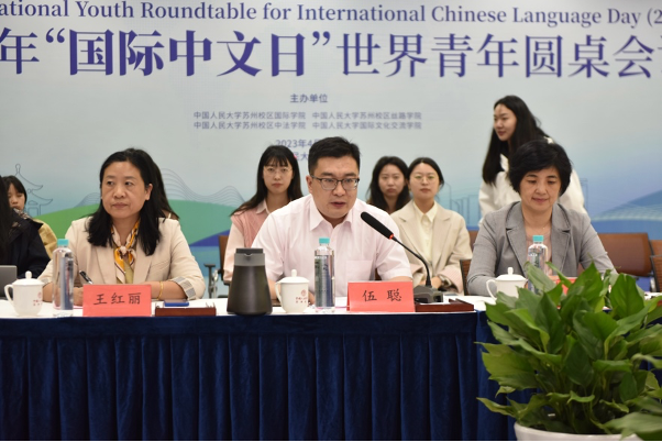 苏州校区党委书记伍聪在致辞中鼓励参与活动的各国年轻人更多使用中文促进对话和相互了解,从历史、当下和未来三个角度讨论中文在世界文明交流互鉴中的作用。他指出,青年一代是文明互鉴的主力军,应勇于发表真知灼见,体现文化传承的担当。