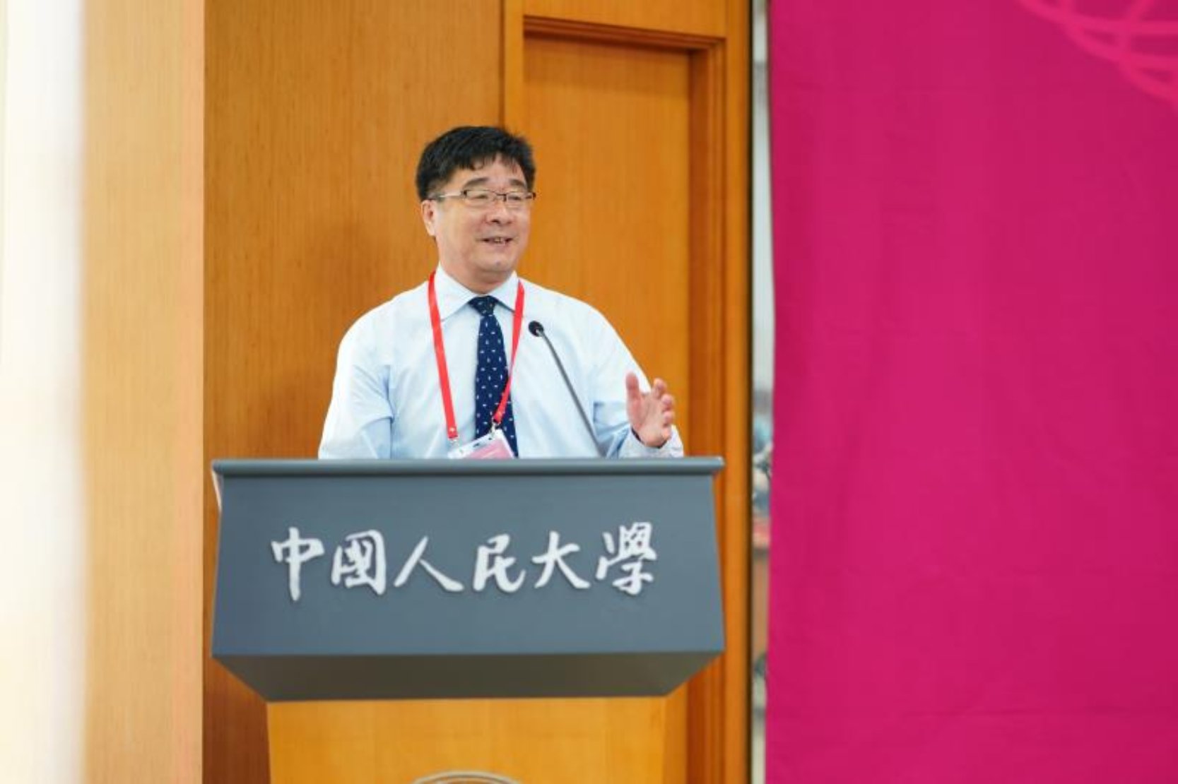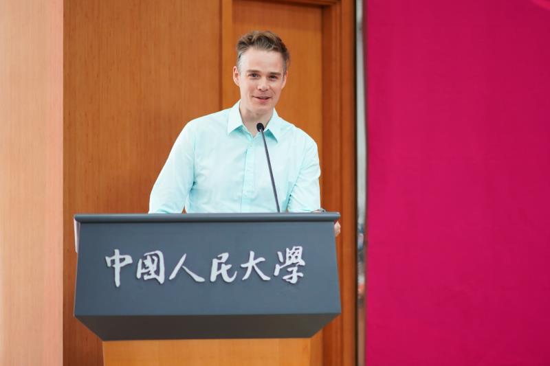 人大校友代表、CCTV英国籍主持人大牛(Daniel Newham)讲述了自己学习汉语的经历,感恩母校,感恩老师,并希望新学院“继往开来”,中文声音响彻全球。