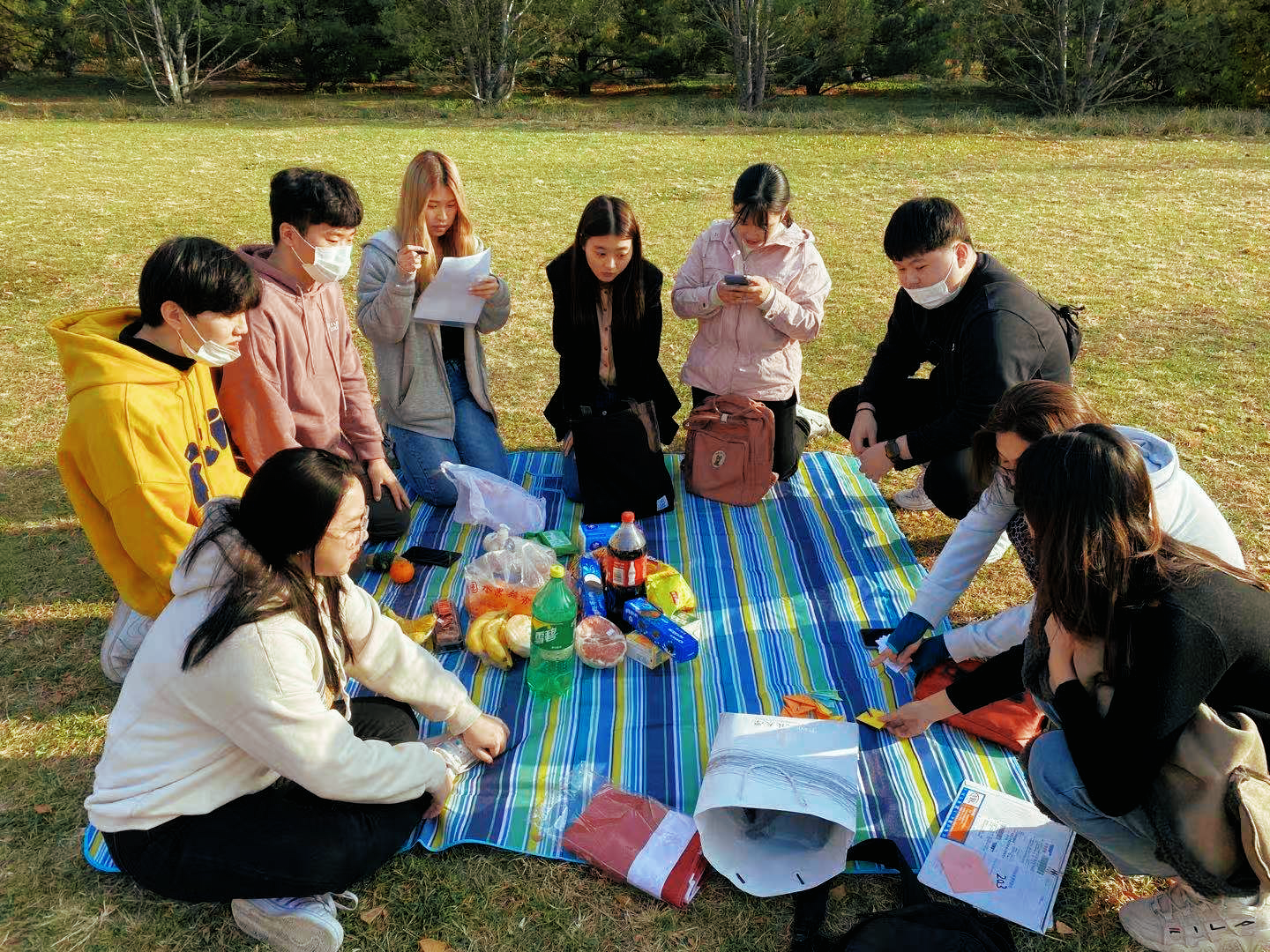 活动伊始,大家席地而坐开始自我介绍。通过“抽签环节”,参与秋游的师生均抽取到了精美的纪念品。在一片欢声笑语中,秋游活动逐渐步入高潮。